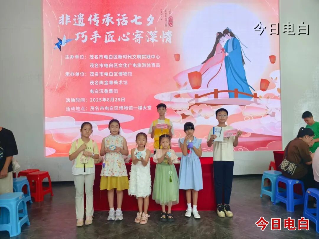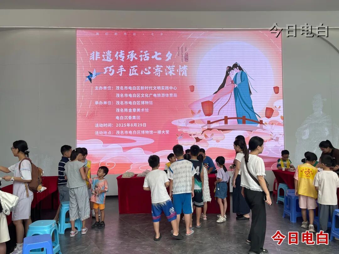 8月29日上午,“非遗传承话七夕 巧手匠心寄深情”七夕主题活动在电白区博物馆一楼大堂温馨举办。此次活动由茂名市电白区新时代文明实践中心、茂名市电白区文化广电旅游体育局主办,茂名市电白区博物馆、茂名陈金章美术馆、电白沉香集团联合承办,为群众打造了一场兼具文化韵味与互动乐趣的节日盛宴。