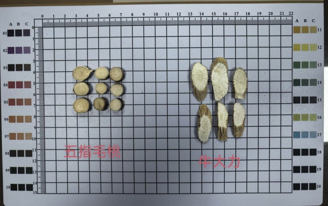 五指毛桃为桑科植物粗叶榕的干燥根。华南地区习用药材,又叫五爪龙、土北芪。《岭南采药录》记载:“五爪龙,别名五龙根、火龙叶,其叶五岐、有毛,而气清香。”药材根呈圆柱形,表面灰棕色或褐色,有纵皱纹,可见明显的横向皮孔及须根痕;饮片皮薄,断面木部呈黄白色,有众多同心环,可见放射状纹理,皮部与木部易分离;气微香特异味微甘。省标记载五指毛桃原植物叶片3-5深裂或浅裂片,野外见到的还有七指甚至九指的,这是生长年份不同的原因,年份越大指数越多含量更高。