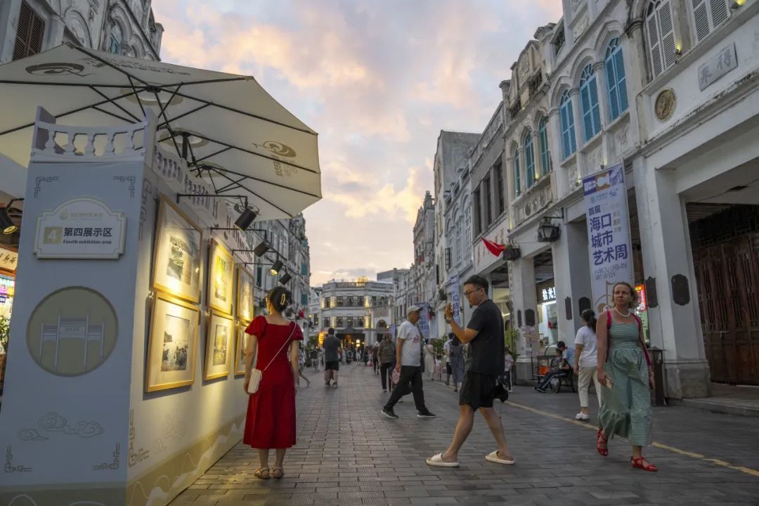 海口骑楼老街上,长长的 “连廊” 为游客提供了游玩与避暑的好去处。(图源:“海客谈”微信公众号)