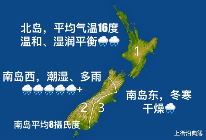 新西兰位于大洋洲,属于南太平洋的岛国。库克海峡把新西兰的南北两个岛屿相对分开。北岛大概有11.4万平方公里,地形是以软岩丘陵和火山台地作为主要形态,中部有特别活跃的陶波火山带,因为火山灰的原因土壤格外肥沃,气候暖和还湿润,一整年都适合进行农耕。