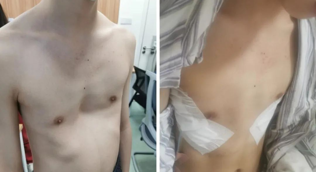 反Nuss手术原理与Nuss手术类似,是通过在胸骨前方放置钢板,将向前隆起的胸骨下压,以矫正鸡胸畸形。这种手术同样具有创伤小、恢复快的特点,术后患者的外观和心肺功能都能得到明显改善。南方医科大学第十附属医院(东莞市人民医院)胸外科副主任(负全责)杜巍介绍道,11-16岁(尤其是11-12岁)是胸廓畸形矫正的黄金窗口期,此时骨性胸廓可塑性强,微创手术矫正成功率较高。市人民医院胸外科在漏斗胸、鸡胸矫正方面具有丰富的临床经验,团队对手术矫治复杂胸廓畸形(如极重度漏斗胸、非对称性漏斗胸等)有较深厚的积累。