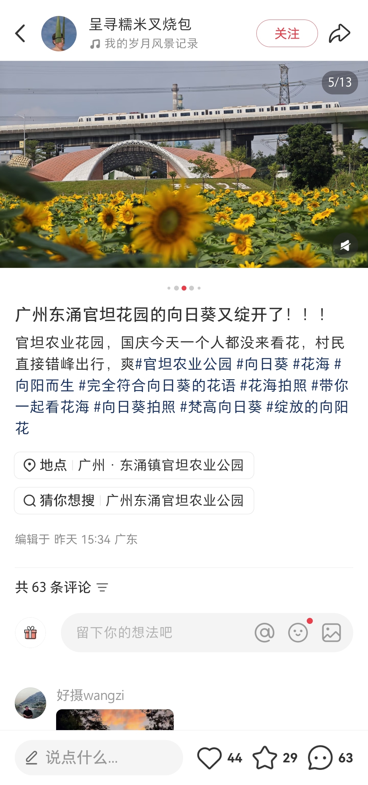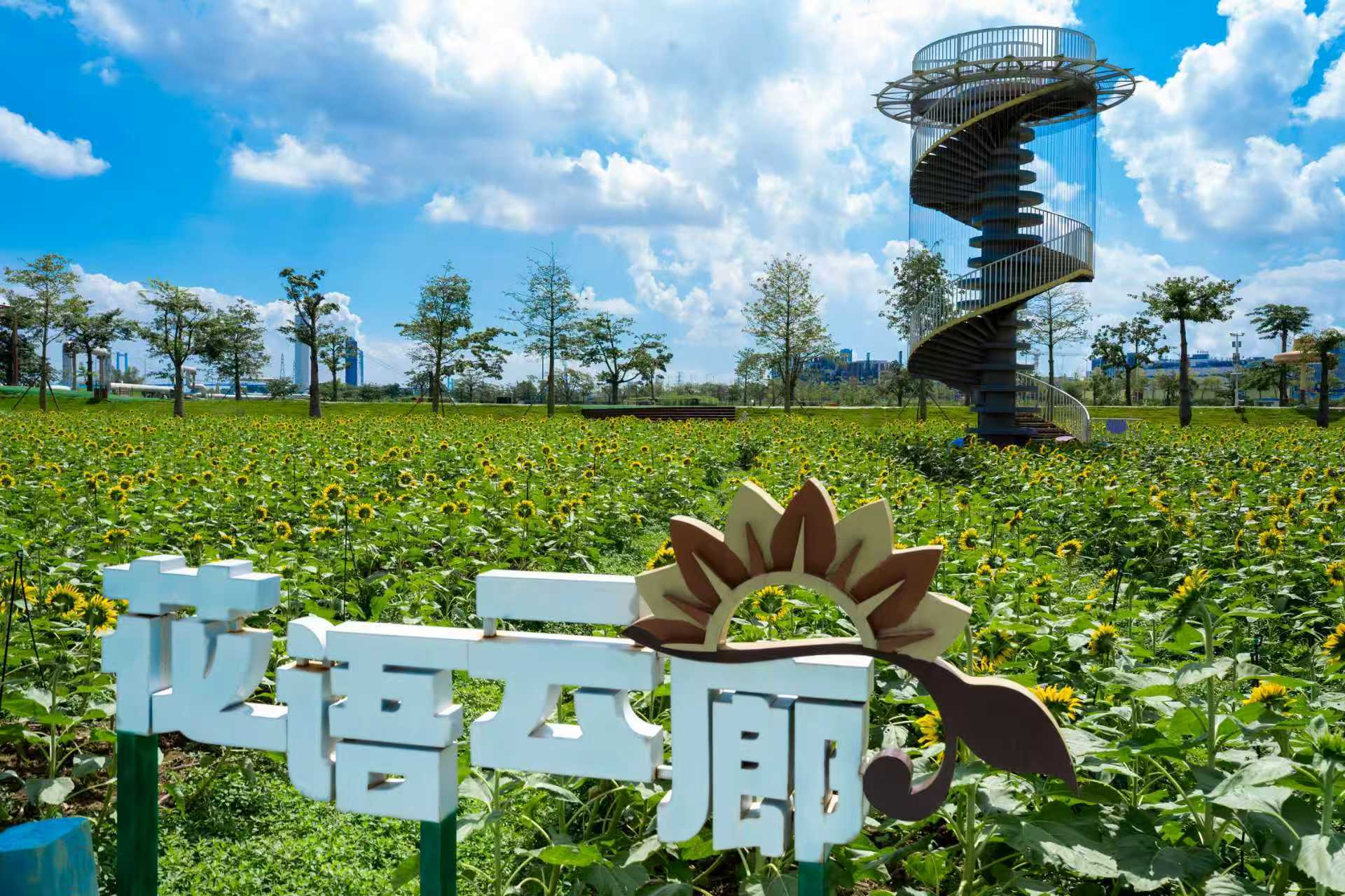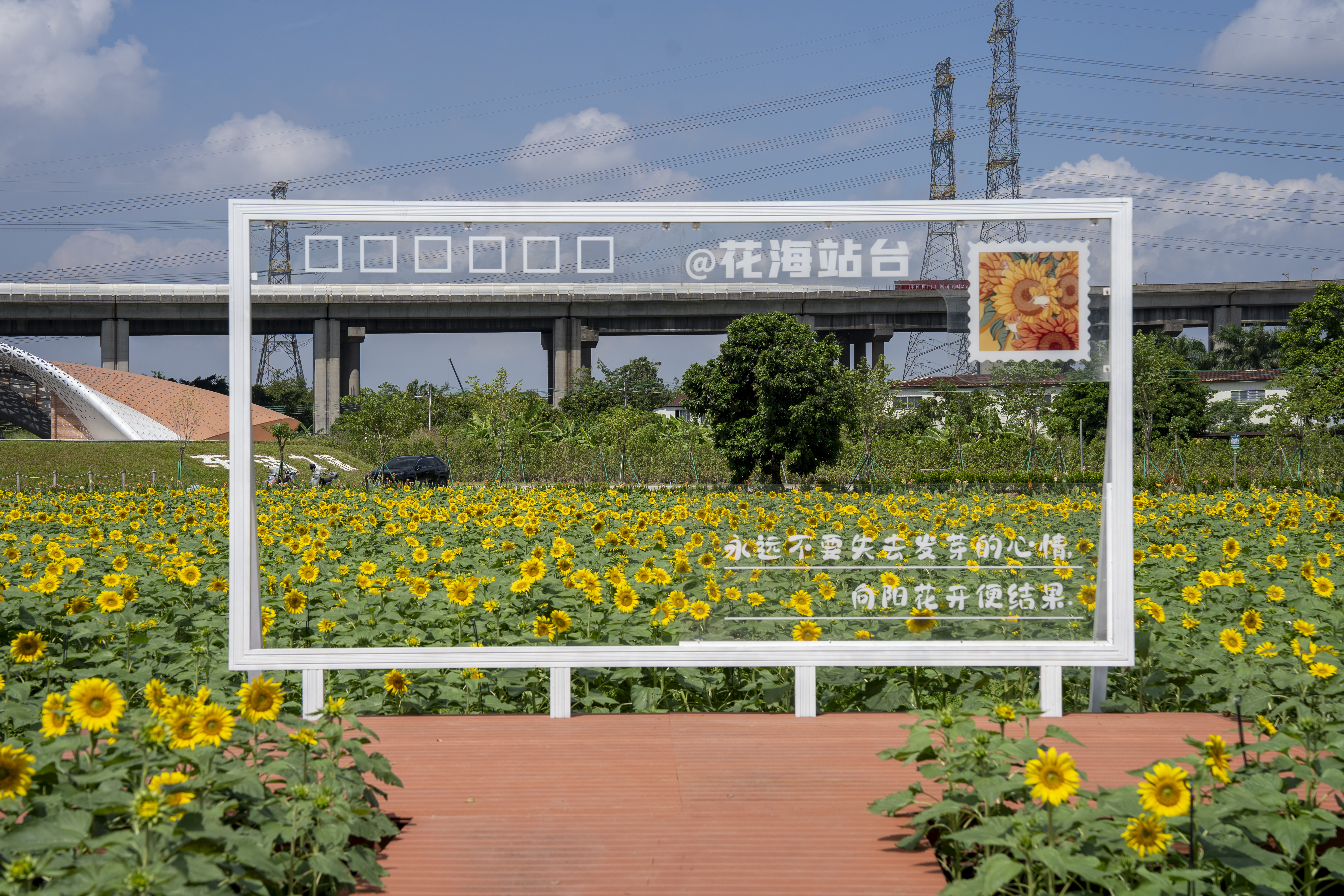 当金秋的阳光洒满李林,南沙东涌镇官坦农业公园的百亩向日葵即将全面盛开,层层叠叠的金色花盘追着太阳转动,风一吹便掀起浪涛般的花浪,仿佛闯入莫奈的油画世界,随手一拍都是治愈系大片。